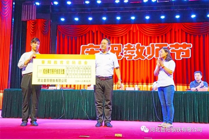 會上總經(jīng)理助理石現(xiàn)英代表公司向陽邑教委捐贈24.83萬元作為教育獎勵基金,并發(fā)表重要講話。 王書記就如何加快陽邑教育又好又快發(fā)展,講了三點意見:一是面向未來,著眼長遠(yuǎn),全面提高教育教學(xué)質(zhì)量;二是與時俱進(jìn),奮力拼搏,加快建設(shè)高素質(zhì)的教師隊伍;三是高度重視,積聚合力,努力為教育發(fā)展?fàn)I造良好的外部環(huán)境。要求全鎮(zhèn)廣大教育工作者要志存高遠(yuǎn)、為人師表、嚴(yán)謹(jǐn)篤學(xué)、與時俱進(jìn),不斷深化教學(xué)改革、優(yōu)化教學(xué)管理,不斷提高專業(yè)素質(zhì)和執(zhí)教水平,全力促進(jìn)陽邑教育優(yōu)質(zhì)、快速、均衡發(fā)展。同時,號召各部門、各站所、各村委會、社會各界要以發(fā)展教育為己任,積極為學(xué)校、教師辦實事,辦好事,主動為教育發(fā)展排憂解難。號召企業(yè)家、社會有識之士向普陽鋼鐵有限公司看齊,加入到“捐資助教”隊伍中來,真正形成人人尊師重教、人人關(guān)心支持教育事業(yè)發(fā)展的良好社會風(fēng)尚,為建設(shè)“教育強鎮(zhèn)”和富裕、文明、美麗新陽邑做出新的更大的貢獻(xiàn)!