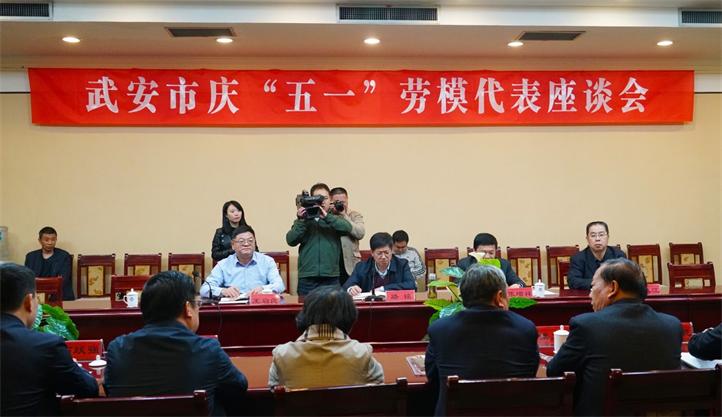 “五一”國(guó)際勞動(dòng)節(jié)臨近,為弘揚(yáng)勞模精神,在全社會(huì)樹立“尊勞模、學(xué)勞模、做勞?!钡孽r明導(dǎo)向,營(yíng)造“勞動(dòng)最光榮,勞動(dòng)人民最光榮”的濃厚氛圍,4月26日,武安市總工會(huì)在藍(lán)天賓館舉辦了慶“五一”勞模代表座談會(huì),出席座談會(huì)的領(lǐng)導(dǎo)有市委副書記路銘,市人大副主任、總工會(huì)主席張?jiān)鱿?,市總工?huì)黨組書記、常務(wù)副主席王啟良,市總工會(huì)副主席王從江及14名勞動(dòng)模范代表人參加了座談。座談會(huì)由武安市人大副主任、總工會(huì)主席張?jiān)鱿橹鞒?。公司黨委副書記、總經(jīng)理石躍強(qiáng)應(yīng)邀出席了會(huì)議。