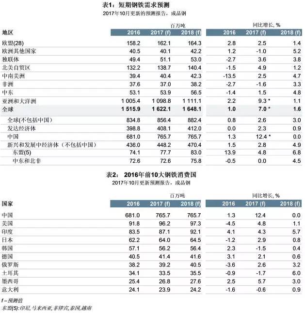 世界鋼鐵協(xié)會(huì)今日發(fā)布2017年10月更新的2017-2018年短期鋼鐵需求預(yù)測結(jié)果。據(jù)預(yù)測,2017年全球鋼鐵需求將達(dá)到16.221億噸,2018年全球鋼鐵需求將達(dá)到16.481 億噸。