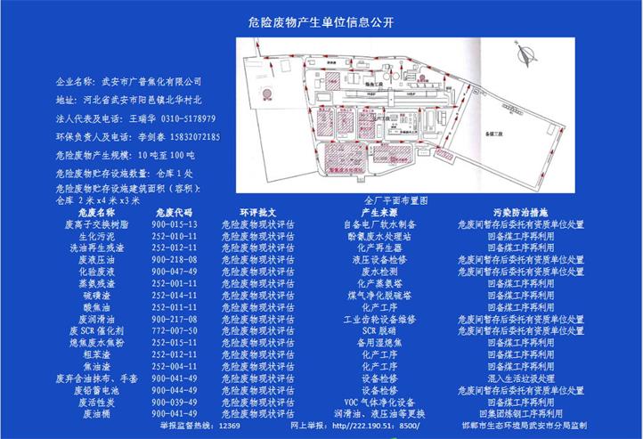 武安市廣普焦化有限公司危險廢物產(chǎn)生單位信息公開