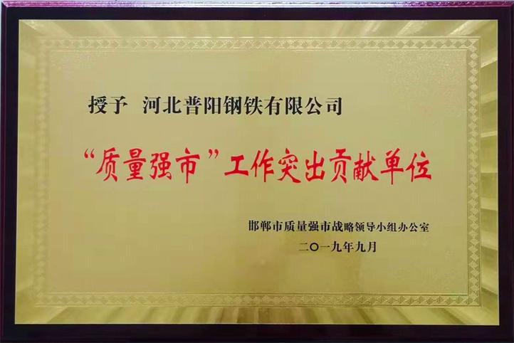 普陽鋼鐵自建廠以來,始終高度重視質(zhì)量管理工作,專注于為客戶提供高質(zhì)量、高附加值的精品鋼材,全面推行“窄幅工藝”和精益管理,通過“走出去,引進(jìn)來”“嚴(yán)管細(xì)管”等方法,持續(xù)不斷地優(yōu)化工藝技術(shù),穩(wěn)定提升產(chǎn)品質(zhì)量,憑借卓越的質(zhì)量管理,先后榮獲“武安市長質(zhì)量獎(jiǎng)”“河北省政府質(zhì)量獎(jiǎng)提名獎(jiǎng)”“邯鄲市長質(zhì)量獎(jiǎng)”和“全國質(zhì)量獎(jiǎng)鼓勵(lì)獎(jiǎng)”等重量級榮譽(yù),有5項(xiàng)產(chǎn)品榮獲國家冶金產(chǎn)品實(shí)物質(zhì)量最高獎(jiǎng)項(xiàng)“金杯獎(jiǎng)”。 |