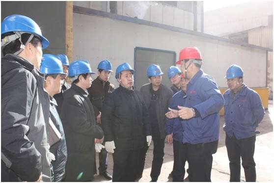 2013年12月31日上午,國家環(huán)保部總量司司長劉炳江、河北省環(huán)保廳副廳長李葆與邯鄲市副市長孟廣軍、武安市市長魏雪生、副市長張俊生等領(lǐng)導(dǎo)到我公司調(diào)研、核查2013年度二氧化硫減排量完成情況。圖為副總理閆存喜在新區(qū)燒結(jié)脫硫現(xiàn)場,為各位領(lǐng)導(dǎo)介紹環(huán)保設(shè)備運行情況及燒結(jié)煙氣脫硫效率和排放指標(biāo)達(dá)標(biāo)情況。