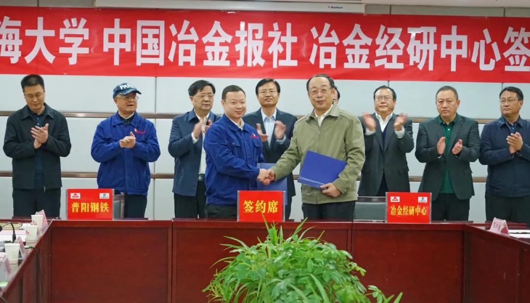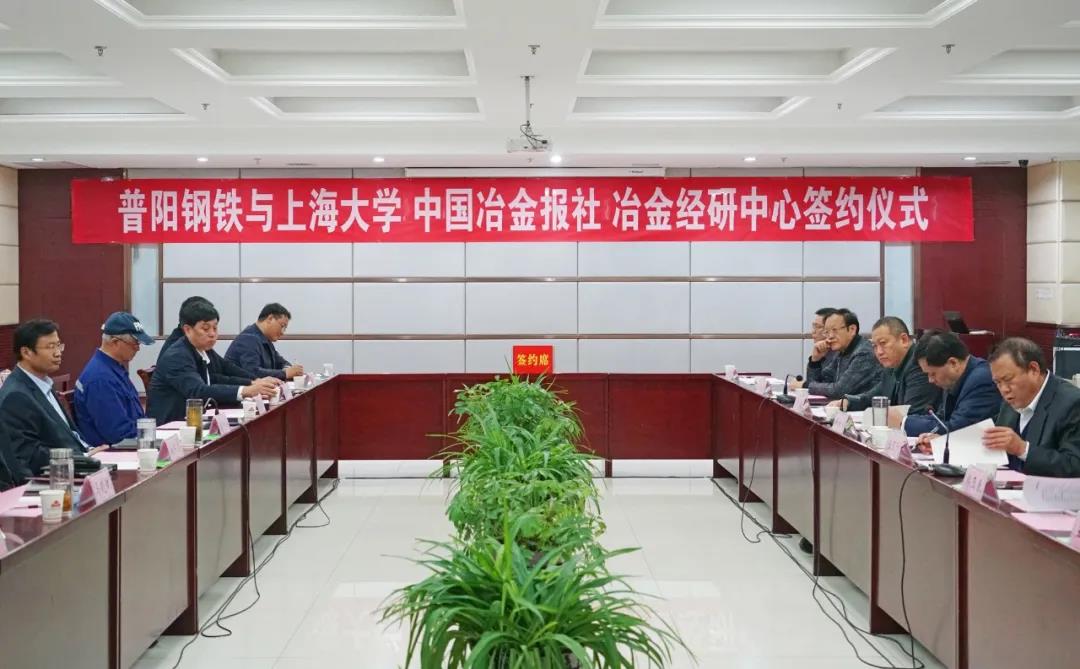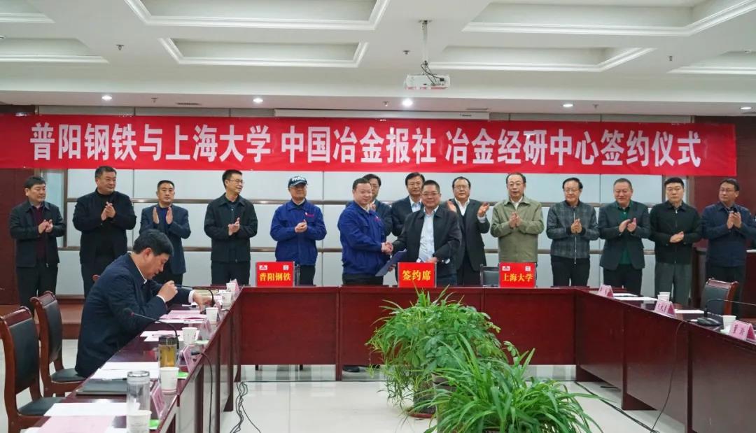 11月19日上午,河北普陽鋼鐵集團與上海大學、中國冶金報社、冶金工業(yè)經濟發(fā)展研究中心戰(zhàn)略合作簽約儀式在文化中心隆重舉行。出席儀式的領導和專家有省委軍民融合辦一級巡視員徐振川、規(guī)劃處副處長王如冰、政策法規(guī)處主任李勇,河北省冶金行業(yè)協(xié)會顧問、河北省政府參事室特約研究員王大勇,國家973項目首席科學家、上海大學材料學院院長董瀚教授,上海大學材料學院副院長韋習成教授,中國鋼鐵工業(yè)協(xié)會副秘書長、中國冶金報社黨委書記、社長陳玉千,中國冶金報社副社長熊余平,冶金工業(yè)經濟發(fā)展研究中心副主任鄭玉春;出席儀式的武安方面領導有市委書記趙洪山,市委常委、常務副市長張國群,市委常委、組織部部長宋懷志,市委常委、秘書長馬曉斌,市委常委、武裝部部長石兵江,市政府副市長賀良,市政協(xié)副主席、應急管理局長王增平;市委辦、政府辦、發(fā)改局、商務局、科工局、環(huán)保分局、自然資源與規(guī)劃局、行政審批局、工業(yè)園區(qū)等部門負責同志也出席了本次簽約儀式。集團黨委書記、董事長郭恩元,副書記、總經理石躍強和副總經理郭龍鑫、王瑞華參加了簽約儀式。