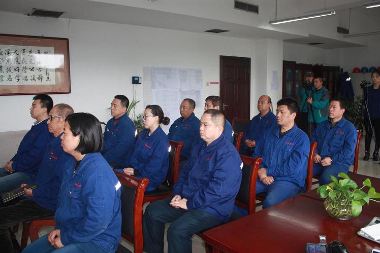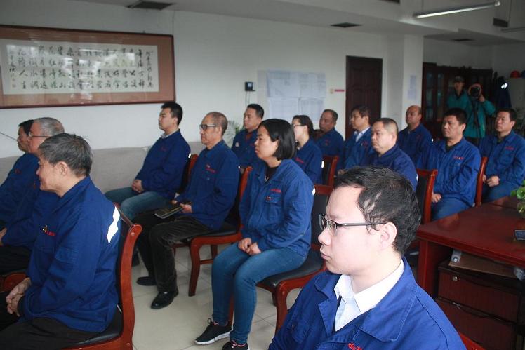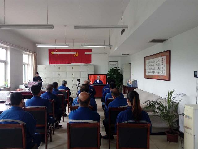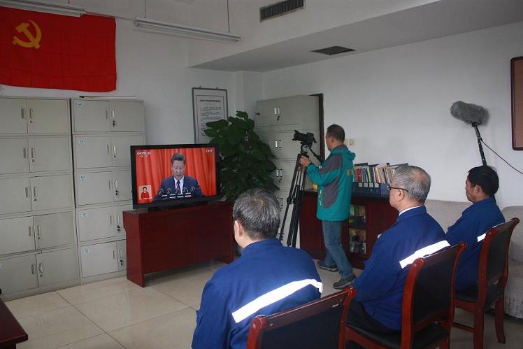 公司黨委書記郭恩元和公司黨員代表正在觀看“中國共產(chǎn)黨第十九次代表大會開幕式。