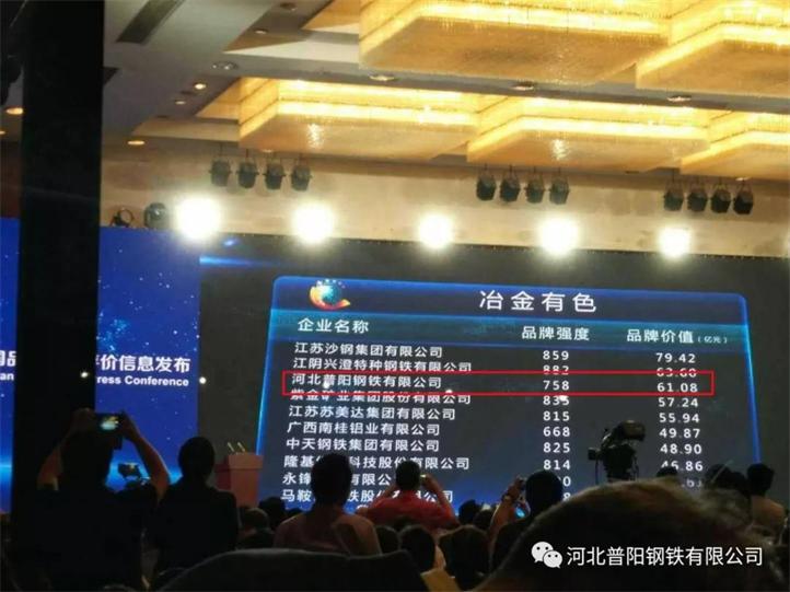 從5月9日召開的2018中國品牌價值評價信息發(fā)布暨第二屆中國品牌發(fā)展論壇會上獲悉,我市普陽鋼鐵榮列冶金有色行業(yè)品牌價值全國第五名,品牌強度758,品牌價值61.08億元。
