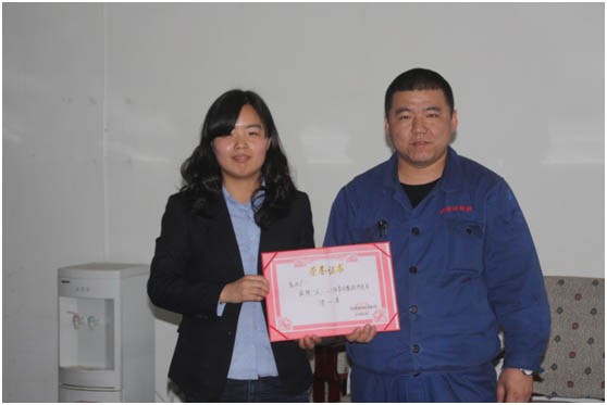 2013年“迎五一”體育比賽圓滿落下帷幕。此次比賽得到了各單位的大力支持,各參賽選手以自己精彩的表現(xiàn),體現(xiàn)了普陽(yáng)人“團(tuán)結(jié)、拼搏、向上”的精神風(fēng)貌,得到了公司領(lǐng)導(dǎo)及廣大工友的一致贊譽(yù)。5月7日下午,辦公室主任石現(xiàn)英代表公司為優(yōu)勝的單位和個(gè)人頒發(fā)了獎(jiǎng)金和證書。圖為石現(xiàn)英與焦化廠領(lǐng)獎(jiǎng)代表的合影。