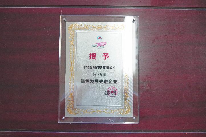 近日,公司綜合辦公室收到由中國鋼鐵新聞網(wǎng)、中國冶金報社聯(lián)合頒發(fā)的“2018年度綠色發(fā)展先進企業(yè)”榮譽獎牌。