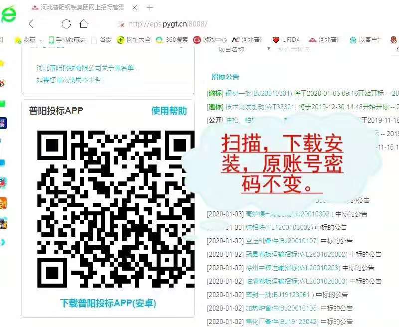 各位供應(yīng)商合作伙伴,從下周起普陽鋼鐵招標(biāo)網(wǎng)上報價和公眾號報價通道就已經(jīng)關(guān)閉?。楸WC以后招標(biāo)的流程能順利進(jìn)行,請下載"普陽投標(biāo)APP"進(jìn)行手機(jī)參與招標(biāo)報價,原賬號密碼不變。目前只支持安卓版,有技術(shù)上問題請撥打0310-5178939。