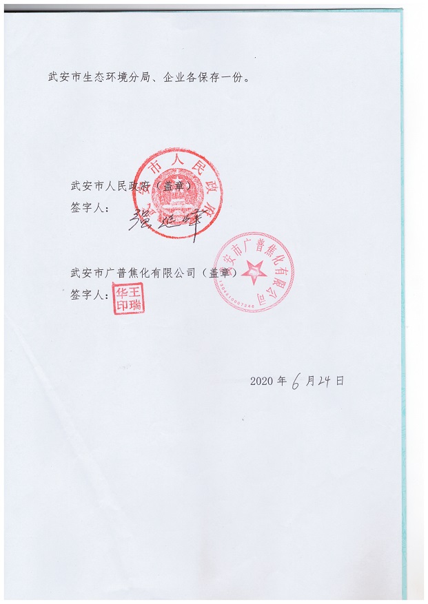 廣普焦化-武安市人民政府土壤環(huán)境重點(diǎn)監(jiān)管企業(yè)污染防治責(zé)任書