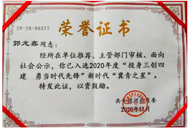 普陽團(tuán)委書記、副總經(jīng)理郭龍鑫當(dāng)選“冀青之星”
