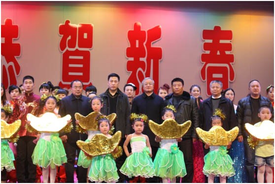 董事長郭恩元。總經(jīng)理石躍強,副總經(jīng)理郭強、曹立國、陳丹峰、王建安一起上臺與全體演職人員合影留念。